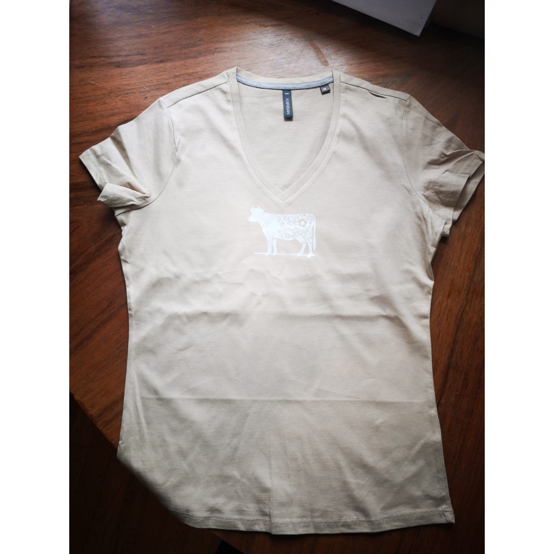 Tee shirt femme beige vache fleurie ANCOOR
